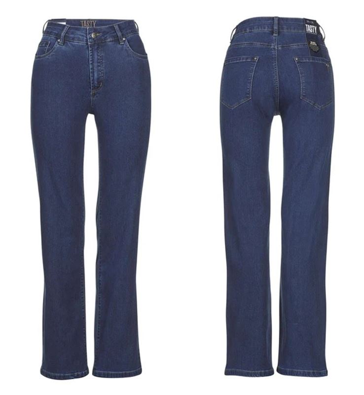 Tasty jeans med vida ben. Samma höga midja och stretchiga kvalitet som övriga Tasty. 47% bomull, 31% viscose, 20% polyester, 2% elastan